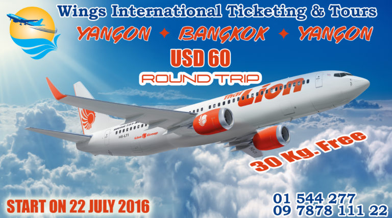 Thai Lion Air ရန္ကုန္ – ဘန္ေကာက္အသြားအျပန္ ( US$ 60 ) ကို ၾကိဳတင္၀ယ္ယူႏိုင္ပါျပီ ….